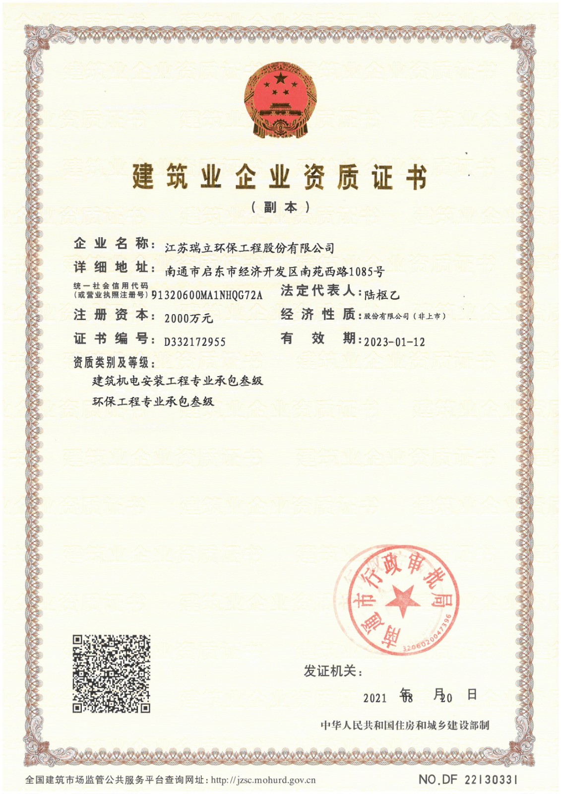 瑞立環保 · 資質榮譽公司取得了環保專業承包資質、ISO9001質量管理體系認證、環保工程設計資質、高新技術企業等。